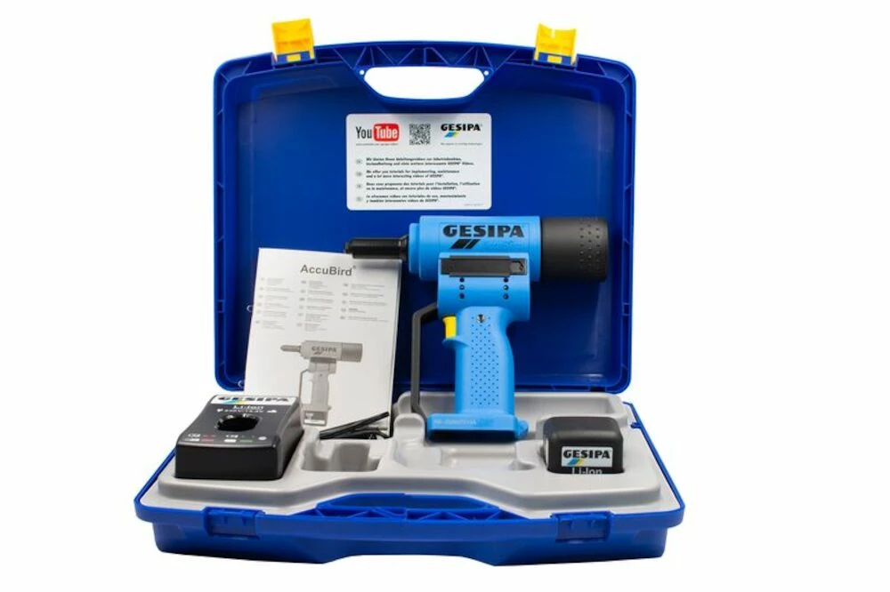 Gesipa 217250019 Pince à rivets aveugles ACCUBIRD avec 2 piles 2.0Ah 1457235 dans un boîtier en plastique