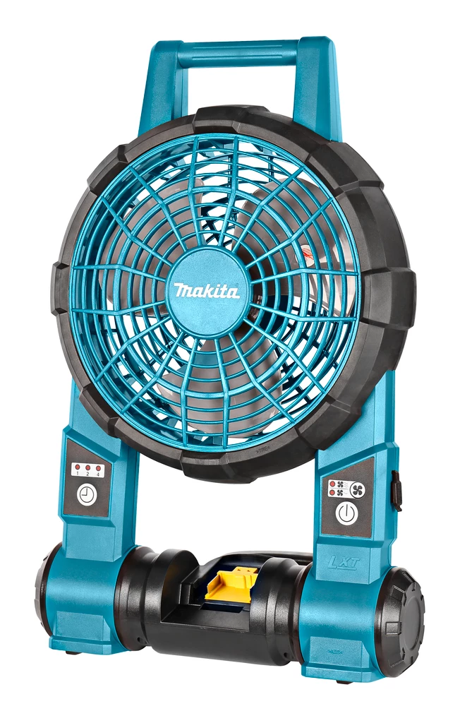 - Le ventilateur fonctionne sur 14,4 V, 18 V et sur le courant secteur grâce à l’adaptateur fourni. Inclinable, 45 degrés vers le haut
