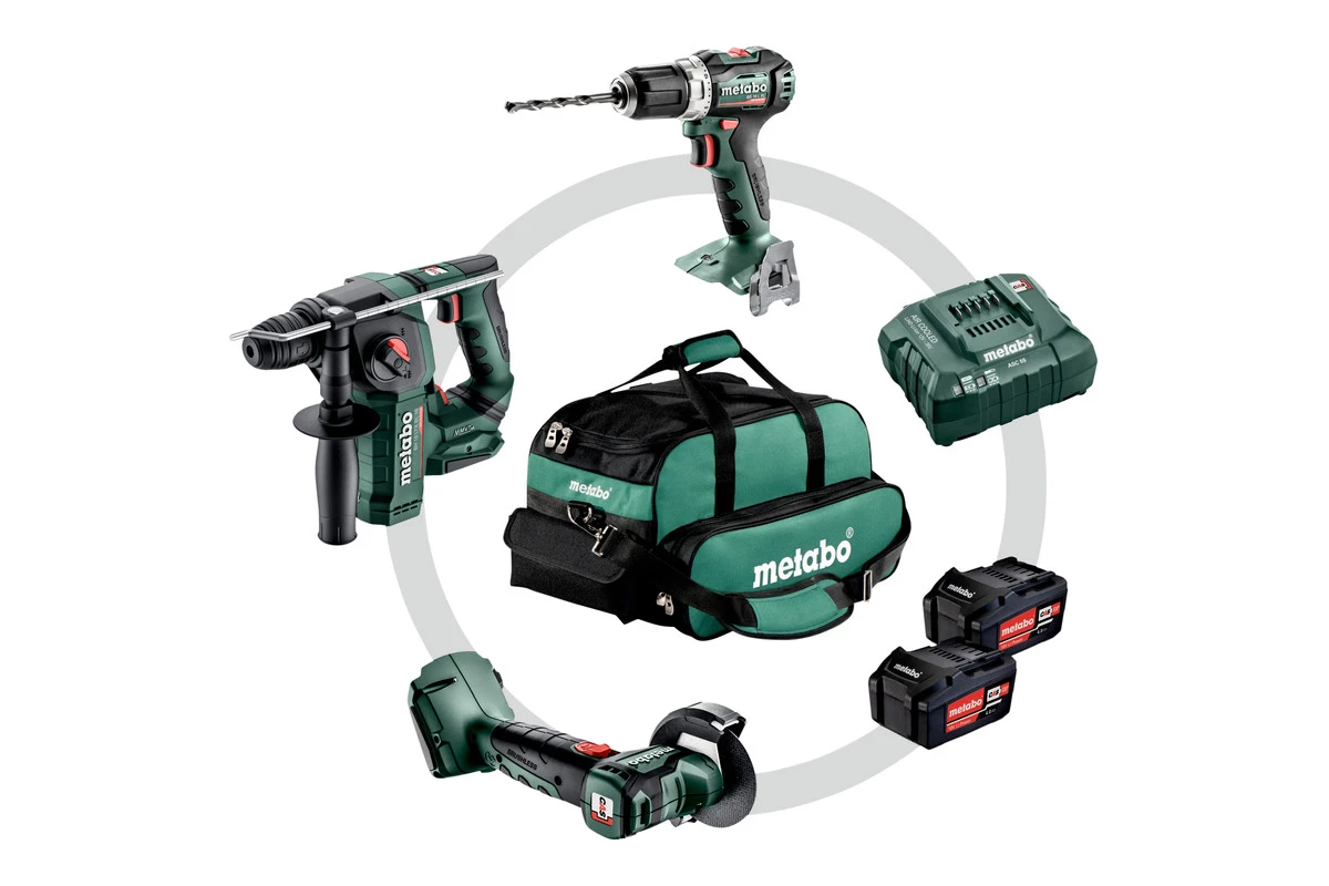 Metabo 691174000 Combo Set 3.1.1 18V 4.0Ah – BS18L BL Perceuse sans fil + CC18LTX Meuleuse + BH18LTX BL 16 Marteau + garantie distributeur 5 ans